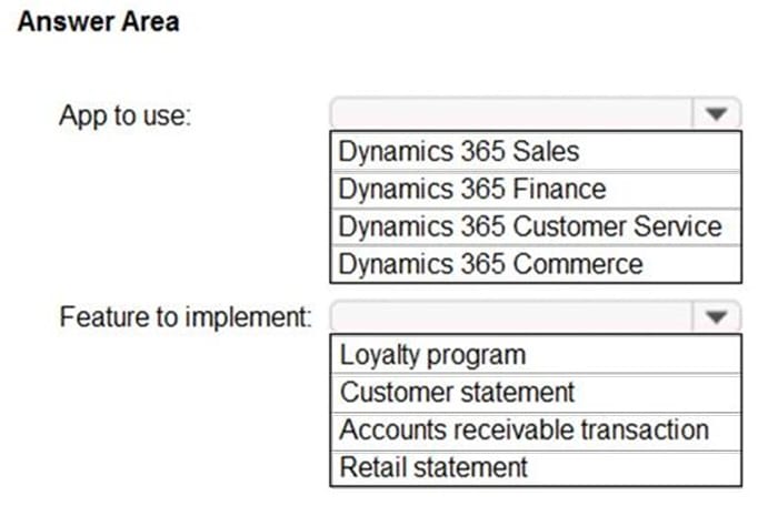 A company plans to implement Dynamics 365 Finance. The company wants to be able to perform the following actions: