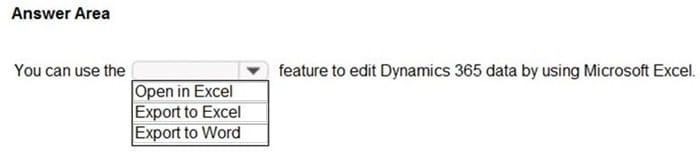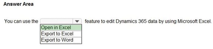 You need to recommend a feature that allow users to edit Dynamic 365 data by using Microsoft Office. Changes that you make in Microsoft Office must update Dynamic 365.
