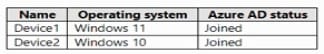 You have a Microsoft 365 tenant that contains the devices shown in the following table.