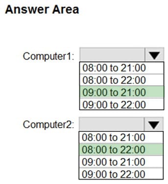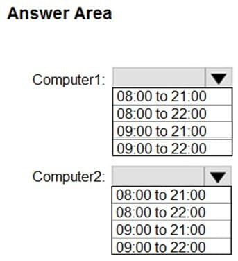 How are the active hours configured on Computer1 and Computer2? To answer, select the appropriate options in the answer area.