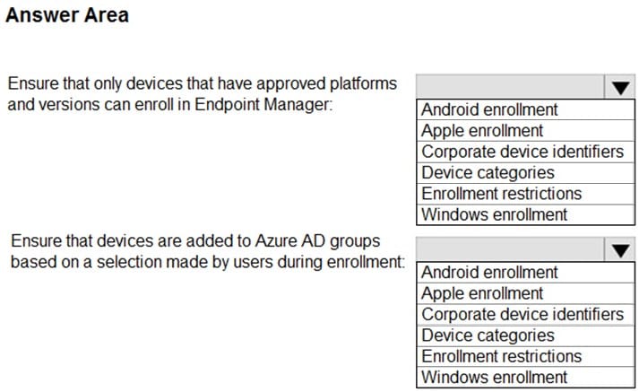 You plan to enroll devices in Microsoft Endpoint Manager that have the platforms and versions shown in the following table.