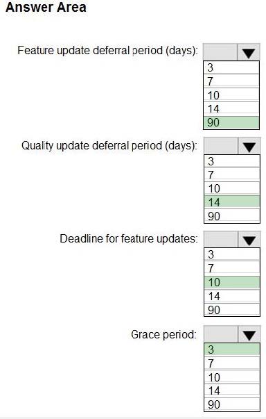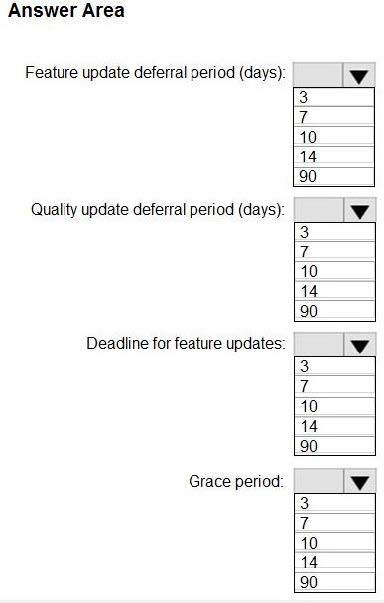 How should you configure the update ring? To answer, select the appropriate options in the answer area.