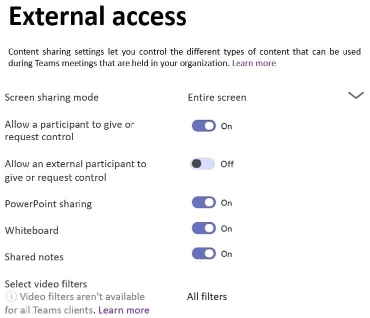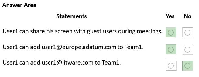 The Content sharing settings in Microsoft Teams are configured as shown in the following exhibit.