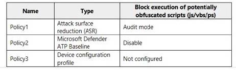 You have a Microsoft 365 tenant that contains a Windows 10 device named Device1 and the Microsoft Endpoint Manager policies shown in the following table.