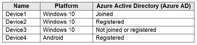 You have a Microsoft 365 E5 tenant that contains the devices shown in the following table.