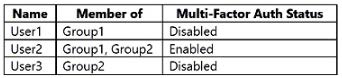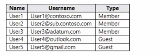 You have a Microsoft 365 subscription that contains an Azure AD tenant named contoso.com. The tenant contains the users shown in the following table.