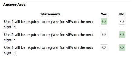 You configure a multi-factor authentication (MFA) registration policy that has the following settings: