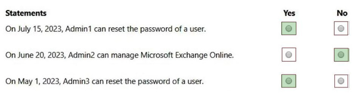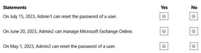 Scope type: Directory Selected members: Group2 Assignment type: Eligible Assignment starts: Jun 15, 2023 Assignment ends: Oct 15, 2023 For each of the following statements, select Yes if the statement is true. Otherwise, select No.