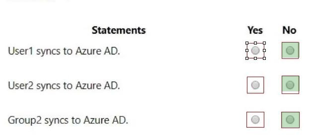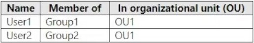 Your network contains an on-premises Active Directory domain and a Microsoft 365 subscription. The domain contains the users shown in the following table.