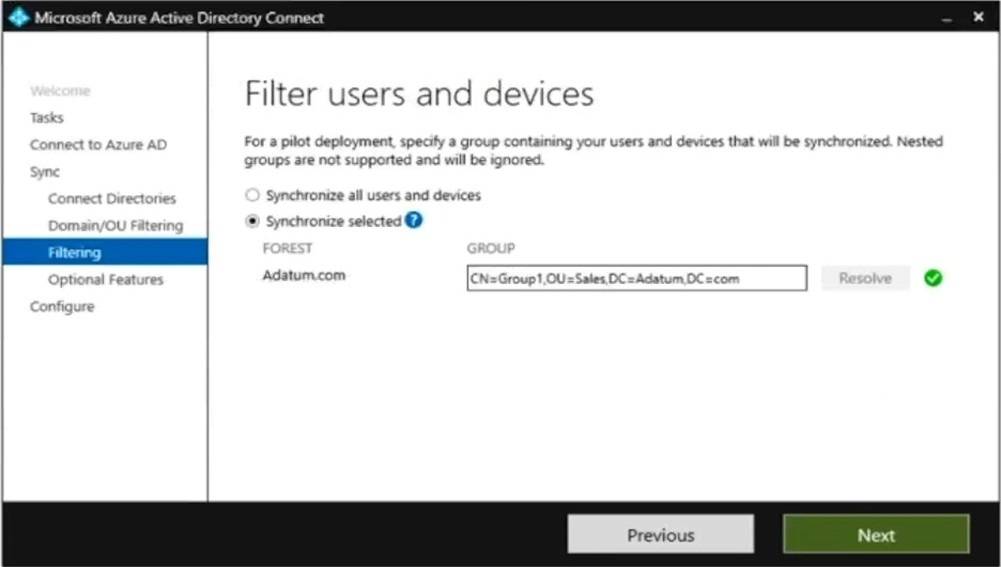You are deploying Azure AD Connect.