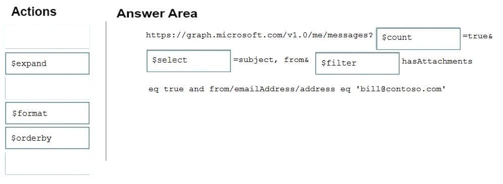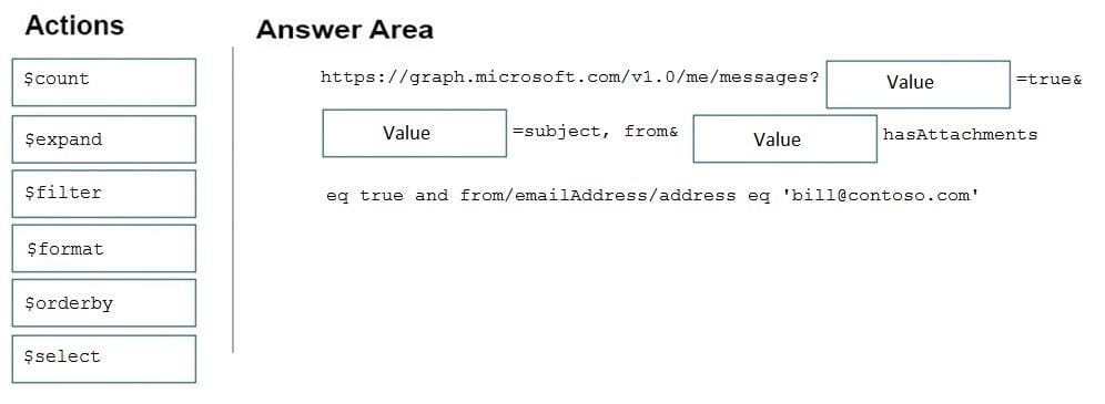 How should you complete the URI to retrieve the results? To answer, drag the appropriate values to the correct targets. Each value may be used once, more than once, or not at all. You may need to drag the split bar between panes or scroll