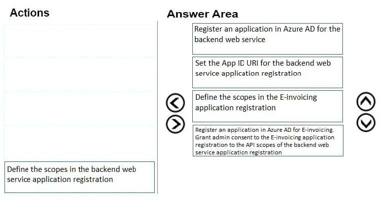 Which four actions should you perform in sequence? To answer, move the actions from the list of actions to the answer area and arrange them in the correct order.