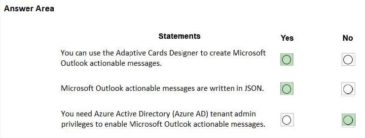 For each of the following statements, select Yes if the statement is true. Otherwise, select No. NOTE: Each correct selection is worth one point.