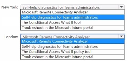 You need to troubleshoot the issues reported by the New York and London office users.