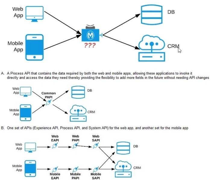 Refer to the exhibit. An organization needs to enable access to their customer data from both a mobile app and a web application, which each need access to common fields as well as certain unique fields.