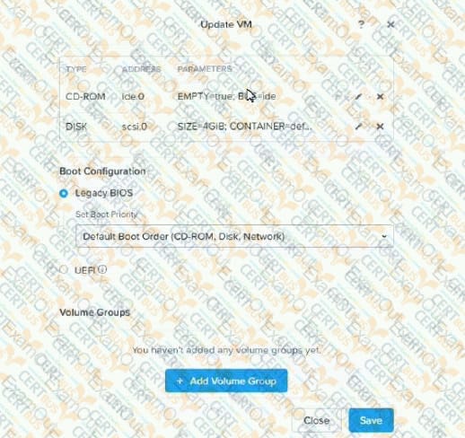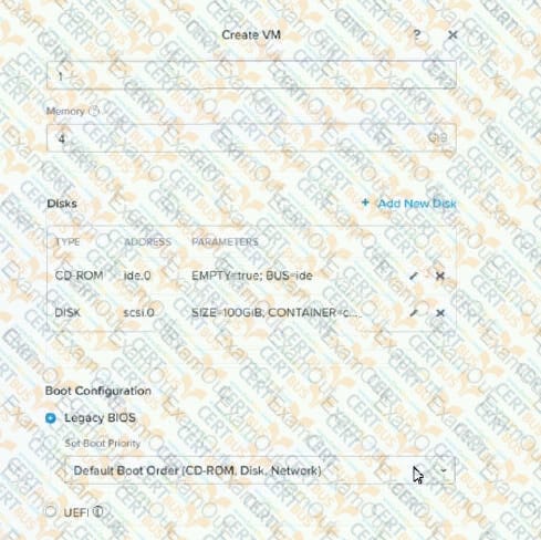 The reference exhibit above is from a newly-created VM. When the administrator powers on the VM. GuestOS installation is not happening What is causing this issue?