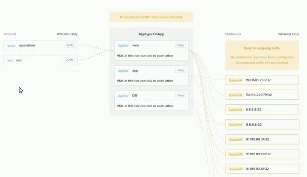 An administrator creates a security policy that isolates their financial application from accessing the Internet When viewing the policy in Prism Central, several connections from the application are outbound to the Internet. What is causing this issue with the policy?