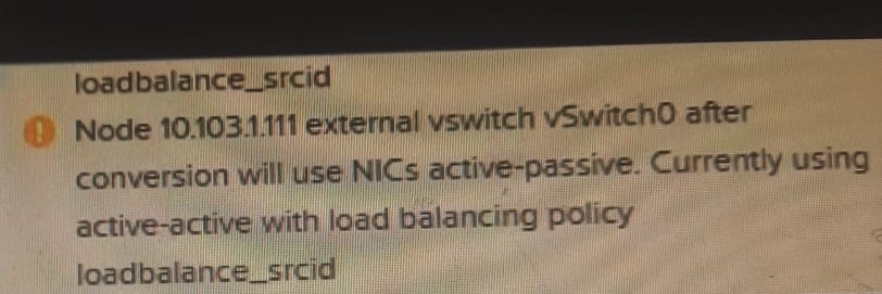 An administrator receive the warning massages shown in the exhibit while validating cluster conversion from EXSi to AHV. What should the administrator do to address this warning in v Center Server?