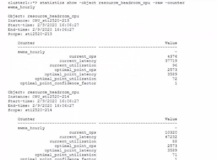 You have a 2-node FAS8300 switchless cluster. You ran the performance capacity report to see the last hour of performance Referring to the exhibit, which two statements describe the performance? (Choose two.)