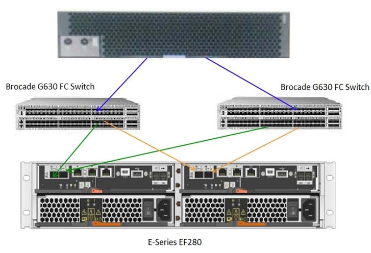 A customer needs to add an EF280 with FC into its existing Brocade fabric but the FC ports in the SANtricity System Manager are showing the FC ports as down and the LED on the FC HIC is amber.