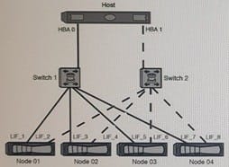 Referring to the exhibit, which FC LIF would cause a path failure on a host connecting to a LUN?