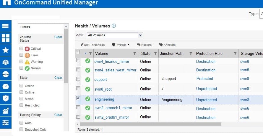 You want to restore a file from the engineering volume that is shown in the exhibit. When you click Restore in OnCommand UnifiedManager, there are no files available to restore. Referring to the exhibit, what caused this problem?