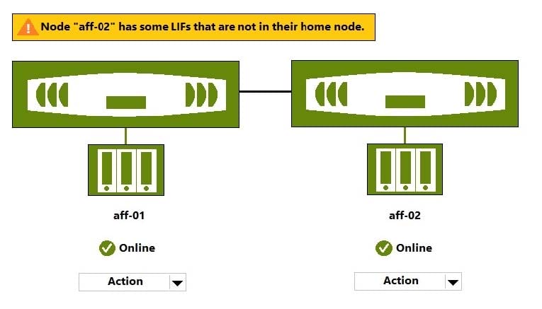 Referring to the exhibit, what must be performed on nodes aff-01 and aff-02 to allow them to failover and giveback properly?