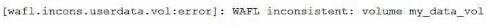 D. Use the wafliron command against my_data_vol to solve the inconsistency on the volume.