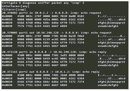 C. Execute another sniffer in the FortiGate, this time with the filter "host 10.0.1.10"