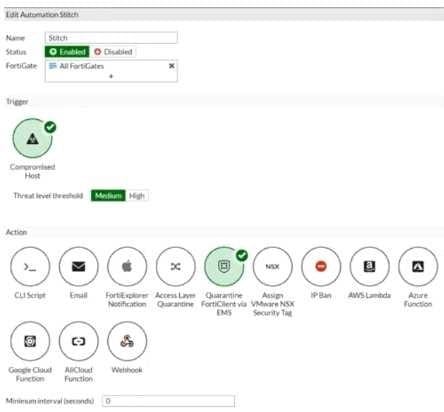 Based on the Security Fabric automation settings, what action will be taken on compromised endpoints?
