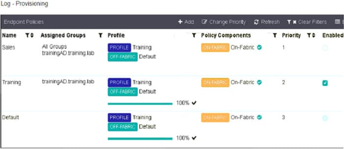 Which policy is applied to the endpoint in the AD group trainingAD?