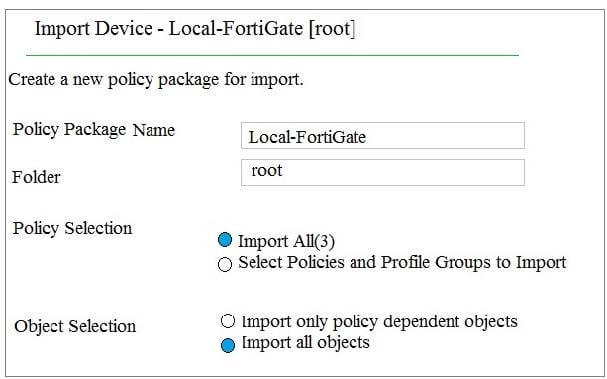 An administrator is importing a new device to FortiManager and has selected the shown options. What will happen if the administrator makes the changes and installs the modified policy package on this managed FortiGate?