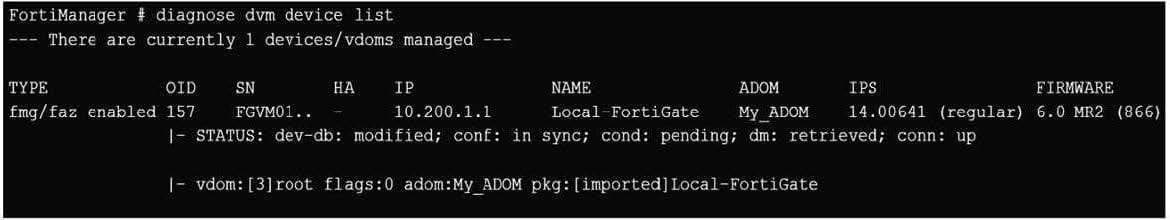 C. The latest history for the managed FortiGate does not match with the device-level database