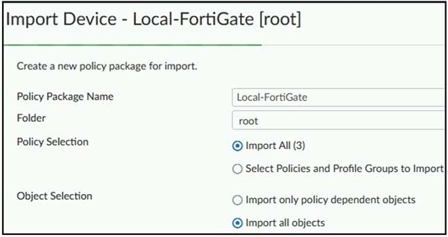 An administrator is importing a new device to FortiManager and has selected the options shown in the exhibit.