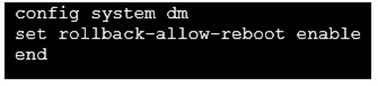 B. It allows FortiGate to reboot and recover the previous configuration from its configuration file.
