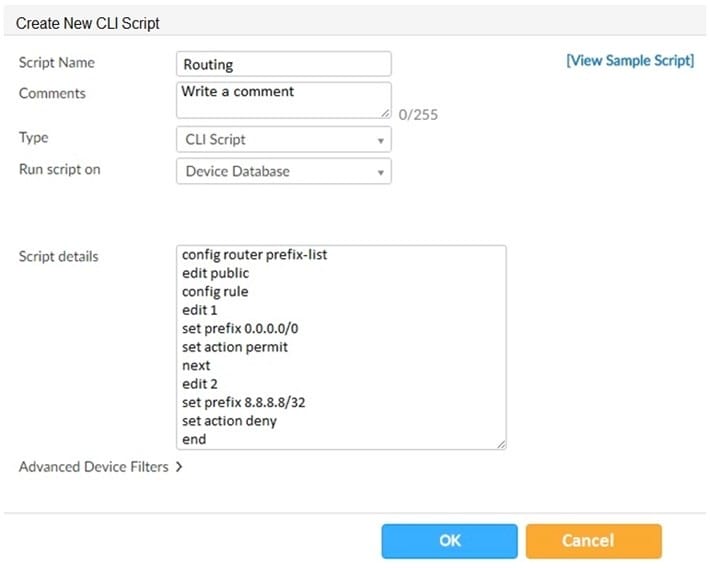 Which two statements are true if the script is executed using the Device Database option? (Choose two.)
