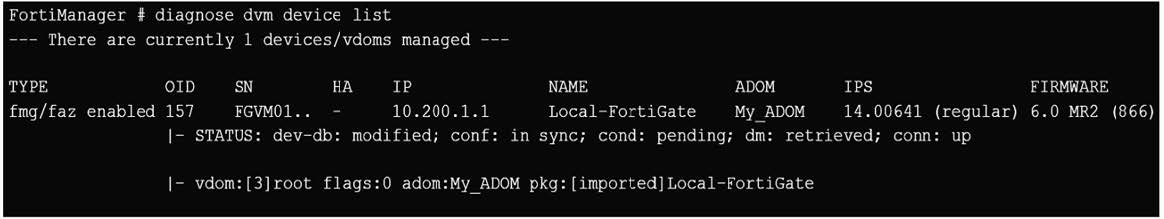 C. The latest history for the managed FortiGate does not match with the device-level database