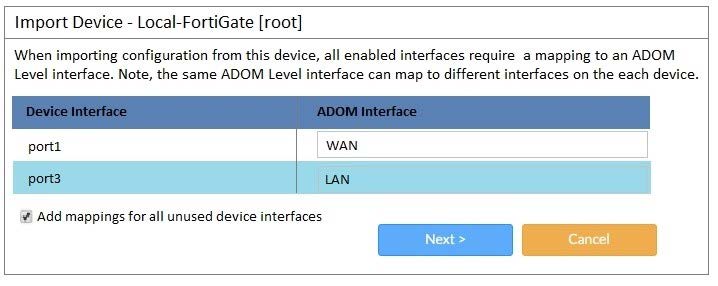 D. WAN zone on FortiGate and WAN interface on FortiManager