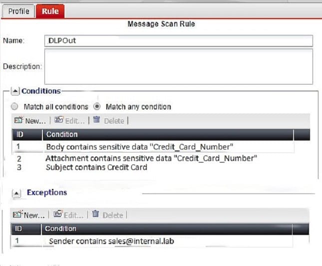 A. An email message containing the words "Credit Card" in the subject will trigger this scan rule