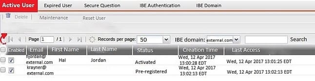 Examine the FortiMail IBE users shown in the exhibit; then answer the question below Which one of the following statements describes the Pre-registered status of the IBE user [email protected]?