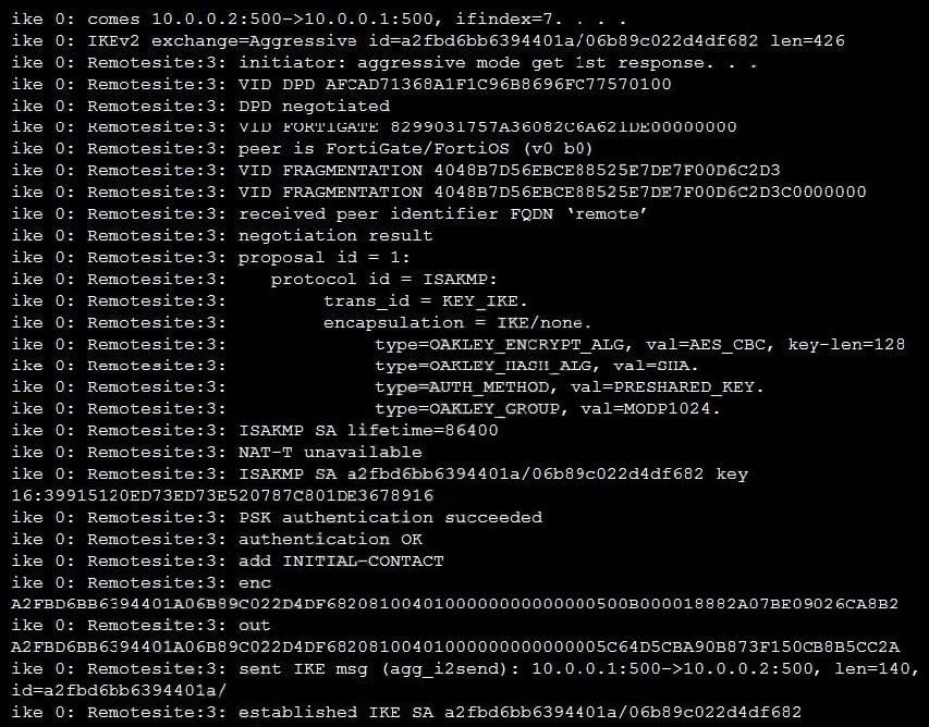 Refer to the exhibit, which contains partial output from an IKE real-time debug.