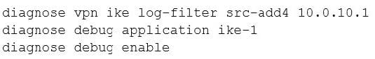 An administrator wants to monitor the VPN by enabling the IKE real time debug using these commands: diagnose vpn ike log-filter src-addr4 10.0.10.1 diagnose debug application ike -1 diagnose debug enable The VPN is currently up, there is no traffic crossing the tunnel and DPD packets are being interchanged