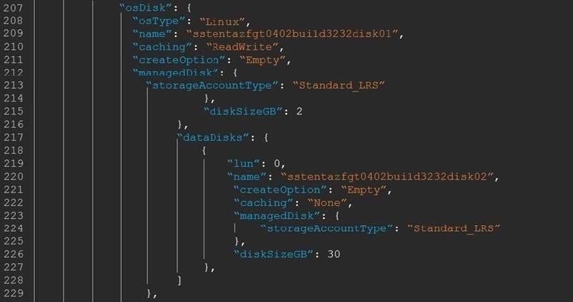 Refer to the exhibit. You attempted to deploy the FortiGate-VM in Microsoft Azure with the JSON template, and it failed to boot up. The exhibit shows an excerpt from the JSON template.