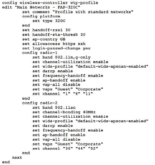In the WTP profile configuration shown in the exhibit, the AP profile is assigned to two FAP-320 APs that are installed in an open plan office.
