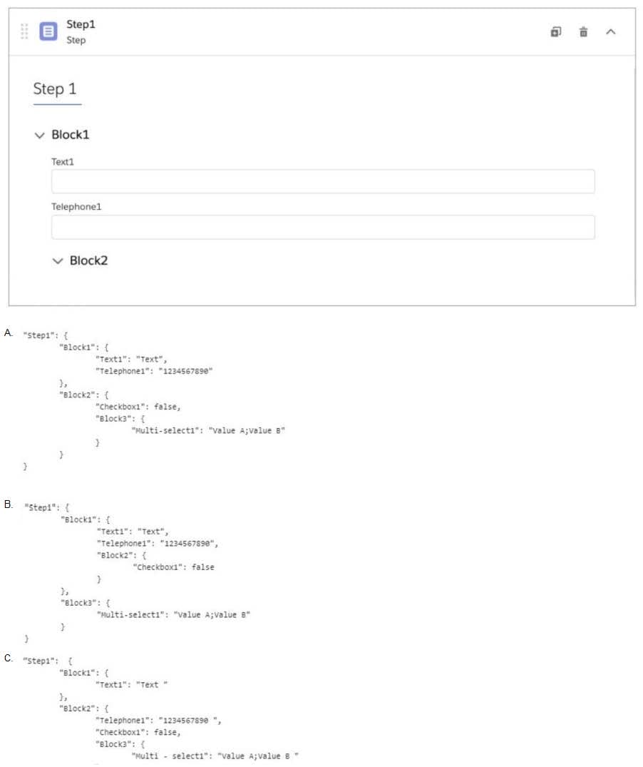Refer to the exhibit below. What JSON code correctly represents the step in the OmniScript Structure panel shown?