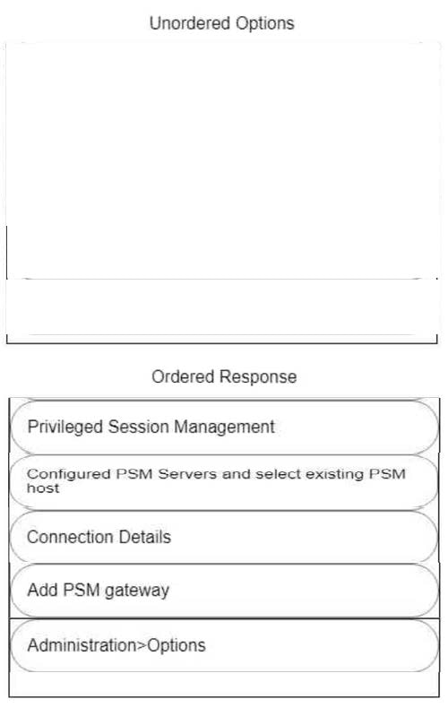 From the PVWA, arrange the steps to configure a PSM host to use the HTML5 Gateway in the correct sequence.
