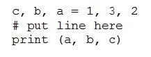 Which line can be used instead of the comment to cause the snippet to produce the following expected output? (Select two answers)