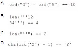 Assuming that the following code has been executed successfully, selected the expression which evaluate to True (Select two answers)