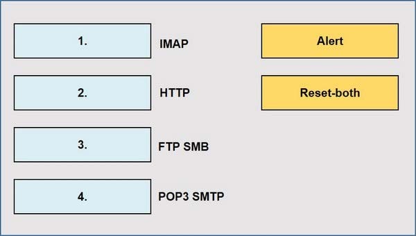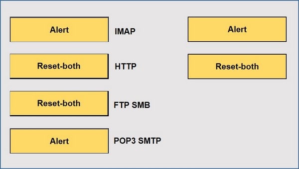 When using the predefined default profile, the policy will inspect for viruses on the decoders. Match each decoder with its default action. Answer options may be used more than once or not at all.