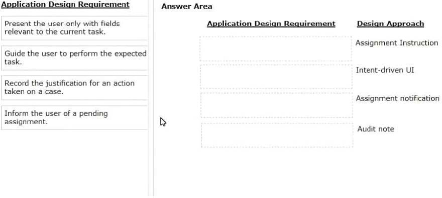Select each application design requirement on the left and drag it to the appropriate design approach on the right.